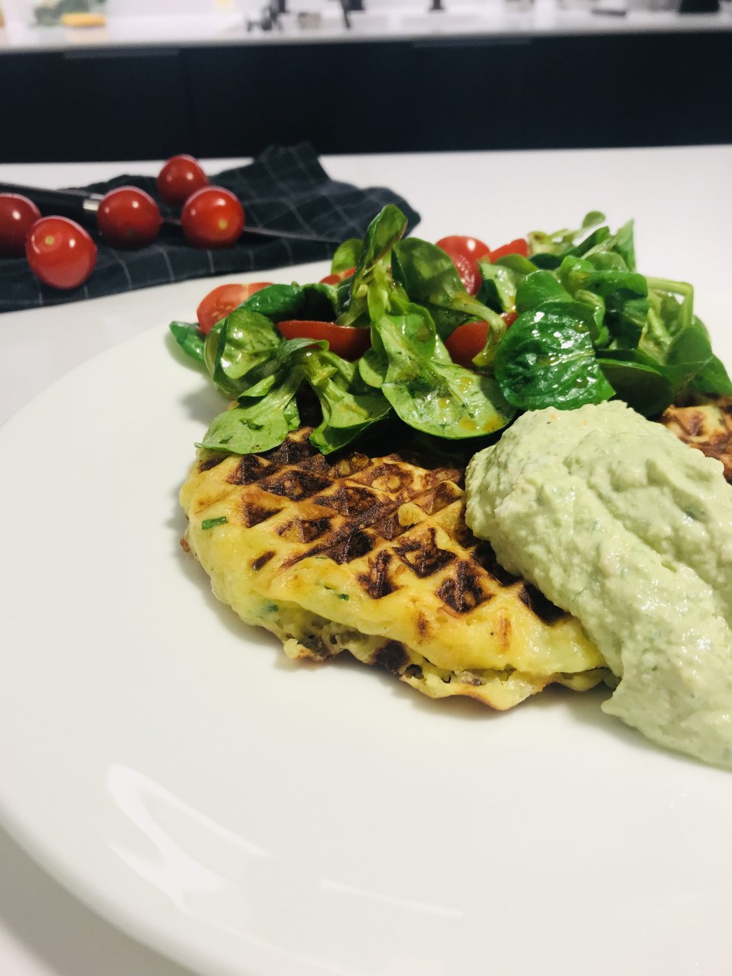 Kartoffelwaffeln mit Tomaten-Frischkäse-Dip